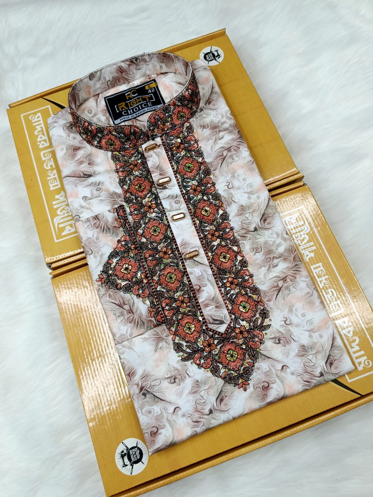 Digital Printed Cotton Panjabi ( ◼️Fabrics: কটন কাপড় ◼️Button Type: স্নাপ বাটন
